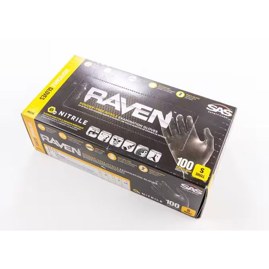 (100) Disposable Powder-Free Nitrile Gloves | SAS Safety Raven™ | Size Options