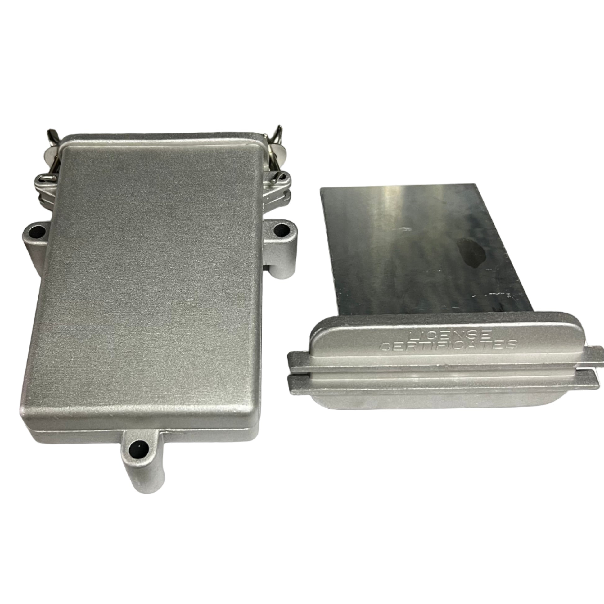 ABOUT: Protect and transport your essential documents with confidence using our Cast Aluminum Document Holder. Built for durability and designed for a professional look, this document holder is the ideal solution for safeguarding blueprints, permits, maps, or artwork in demanding environments. 7.75" x 5.55" x 1.95"